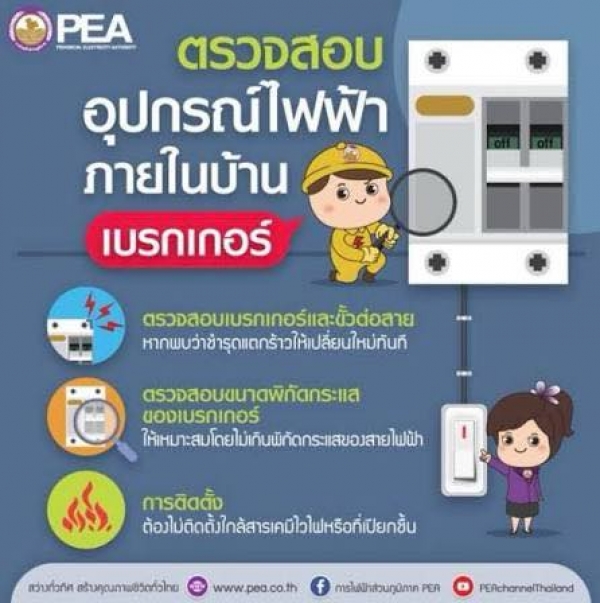 ตรวจสอบอุปกรณ์ไฟฟ้าภายในบ้านเรือน เพื่อลดภาวะไฟฟ้ารั่วและลัดวงจร
