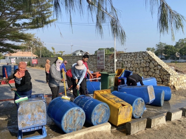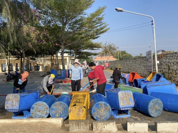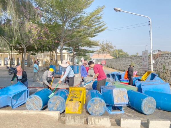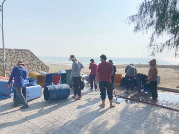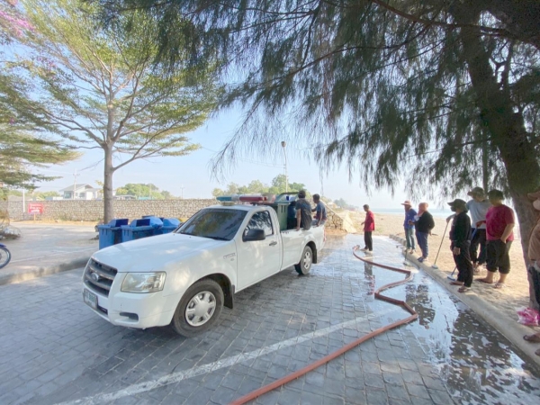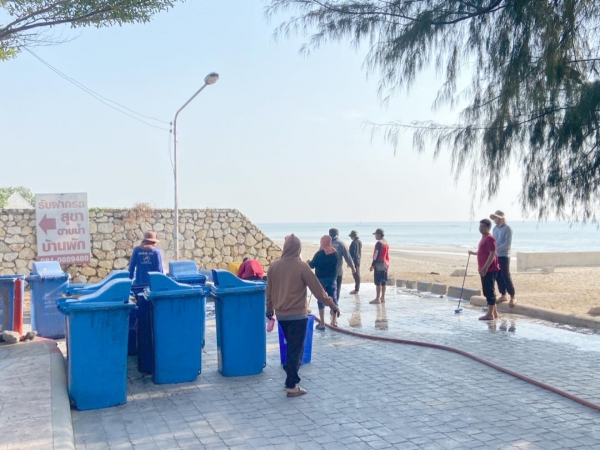 ร่วมล้างถังขยะเพื่อความสะอาดสวยงาม ไร้กลิ่นเหม็นรบกวนนักท่องเที่ยวบริเวณชายทะเลหาดเจ้าสำราญ..