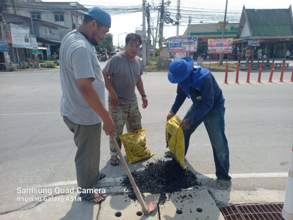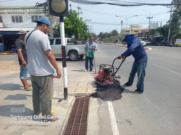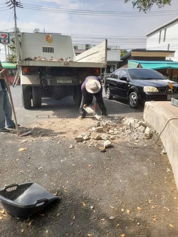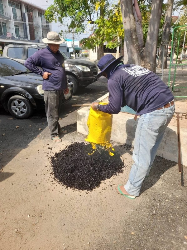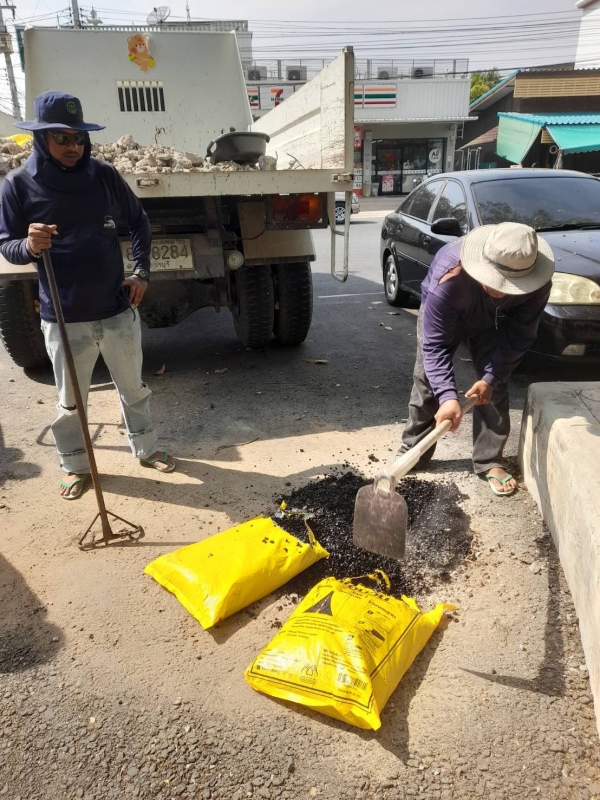 การซ่อมแซมถนน หลายจุดที่เกิดการชำรุดซึ่งอาจเกิดอันตรายกับประชาชน